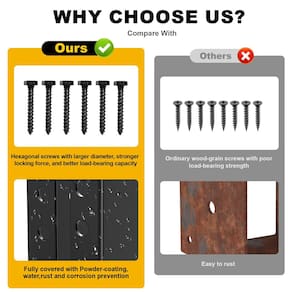 Amplamente utilizado: os ganchos de vigas ocultos simplificam a instalação de vigas e outras vigas de madeira; eles podem ser instalados perto do final da viga, do balanço, do corrimão e da cerca como um kit de suporte estável. O suporte de vigas é adequado para ambientes internos e externos, como jardins, playgrounds, celeiros, cabines de quintal, etc. Robusto e durável; o suporte de vigas de flange oculto é feito de aço pesado de 2 mm de espessura, com uma camada de tinta preta na superfície, que pode prevenir eficazmente a corrosão e a ferrugem. Os suportes de flange ocultos ainda funcionam bem em condições climáticas extremas. Fácil de instalar; Você pode instalar facilmente os ganchos de viga ocultos com parafusos de grão de madeira. Você só precisa instalar primeiro o suporte na viga do cabeçalho, depois deslizar a extremidade do livro na viga e apertar os parafusos de madeira. Tamanho do produto: cada item: 1,5 libras/0,7 kg, 1,75 “L, 2" W, 7,4" H, o suporte de viga oculto se encaixa em madeira padrão de 2 “x 8". O pacote inclui: suporte de viga de 2"* 8" *8, manual do usuário *1, parafusos de madeira *136. Nota: Se você precisar instalar o suporte na placa de concreto ou aço, substitua outros parafusos resistentes. -?Amplamente utilizado?Os ganchos de vigas ocultos simplificam a instalação de vigas e outras vigas de madeira; eles podem ser instalados perto do final da viga, do balanço, do corrimão e da cerca como um kit de suporte estável. O suporte de vigas é adequado para ambientes internos e externos, como jardins, playgrounds, celeiros, cabines de quintal, etc. -?Robusto e durável?O suporte de vigas de flange oculto é feito de aço pesado de 2 mm de espessura, com uma camada de tinta preta na superfície, que pode prevenir eficazmente a corrosão e a ferrugem. Os suportes de flange ocultos ainda funcionam bem em condições climáticas extremas. -?Fácil de instalar?Você pode instalar facilmente os ganchos de viga ocultos com parafusos de madeira. Você só precisa instalar primeiro o suporte na viga do cabeçalho, depois deslizar a extremidade do livro na viga e apertar os parafusos de madeira. -?Tamanho do produto?Cada item: 1,5 libras/0,7 kg, 1,75 “L, 2" W, 7,4" H, o suporte de viga oculto se encaixa em madeira padrão de 2 “x 8". -?O pacote inclui?Suporte de viga de 2"* 8" *8”, manual do usuário *1, parafusos de madeira*136. Nota: Se você precisar instalar o suporte na placa de concreto ou aço, substitua outros parafusos resistentes.