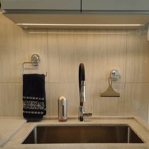 Instalação da ventosa: - Realizar a limpeza da ventosa e da superfície de aplicação com pano úmido. As superfícies devem estar secas e livres de poeira, resíduos e oleosidade. - Gire a tampa da ventosa no sentido anti-horário até desrosquear a ventosa por inteiro. - Posicione o produto no local onde será instalado, aperte firmemente o centro da tampa da ventosa contra a superfície. - Gire no sentido horário a tampa, apertando até que a peça esteja fixada na superfície.