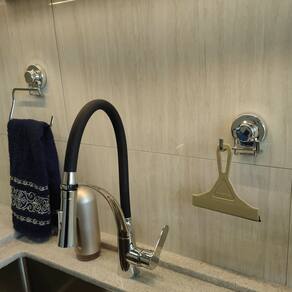 Limpeza e cuidados: - Fixação da ventosa: necessária superfícies lisas, brilhosas, planas, polidas, não porosas, assim como vidro ou porcelanato polido sem texturas ou ranhuras; - Limpar com pano levemente umedecido em água e sabão neutro, seguido de pano seco; - Evitar batidas e contato com objetos cortantes.
