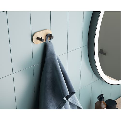 Gancho Organizador Adesivo Duplo de Bambu e Metal Sem Furo - Jolitex MEK Natural -