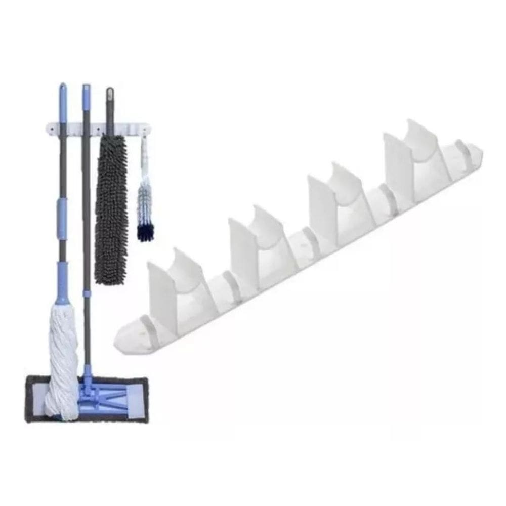 Suporte Para Rodo E Vassoura 4 Encaixes 5 Ganchos Branco