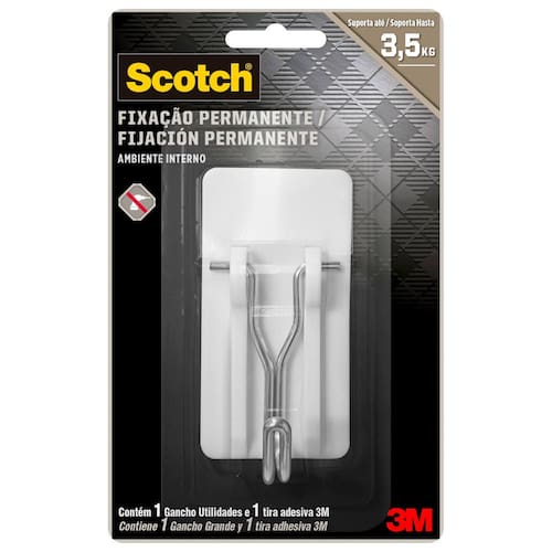 Gancho Scotch Utilidades - HB004684351 - 3M Descrição: Ideal para organizar e pendurar diversos objetos, e o melhor, não precisa de pregos ou parafusos. Suporta até 3,5kg. Organize com facilidade todos os utensílios, este gancho foi desenvolvido com uma fita adesiva de fixação permanente e deve ser aplicado somente em superfícies lisas. Vantagens: - Design moderno e diferenciado - Opção para a decoração do ambiente - Não precisa de pregos ou parafusos - Possui fixação permanente - Suporta até 3,5kg Modo de aplicação: - Limpe a superfície com dtergente e álcool, deixe secar por 10 minutos - Não utilizar outros produtos de limpeza - Remover a fita protetora - Pressione firmemente por 30 segundos - Espera 1 hora para utilizar o gancho Especificações: - Cor: Branco - Material do gancho: Polipropileno, PVC e Haste de ferro - Material do adesivo: Adesivo com base barracha sintética e liner protetor - Peso suportado: Até 3,5kg - Código do Fabricante: HB004270441 - Dimensões do Produto Precauções: - Não utilize em papel de parede - Não use para pendurar quadros nem objetos sobre a cama - Use somente um gancho por objeto - Aplicar somente em superfícies lisas - Este é um produto de fixação permanente: tentar retirá-lo pode causar danos à parede - Aplique o adesivo em superfícies acima de 10ºC e até 40ºC * Caso precise remover o gancho após a fixação, corte a fita (entre a parede e o gancho) com uma faca, lâmina ou estilete. Depois raspe cuidadosamente o resíduo deixado na superfície. Atenção: Este produto pode deixar resíduos permanentes ou causar danos à superfície. * Imagem meramente ilustrativa.