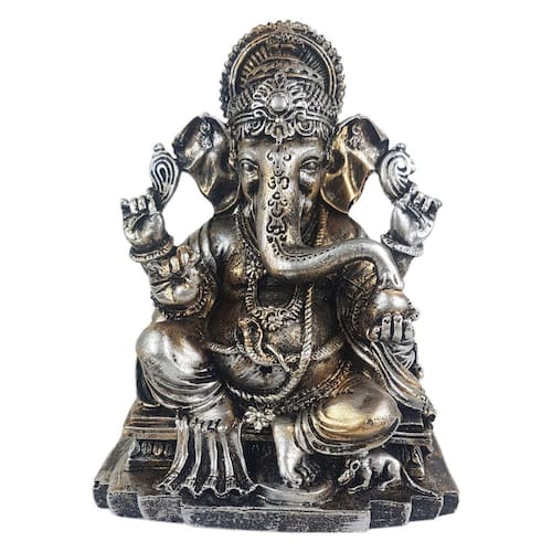 Ganesha de Resina Media na Base cor Dourado com Prata