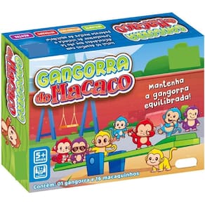 - JOGO GANGORRA DO MACACO O Gangorra do macaco estimula a interação entre pais, filhos e amigos, ajuda a criança a explorar novas experiências através do brincar, estimulando o desenvolvimento da coordenação visual motora, coordenação motora fina, percepção tátil e raciocínio lógico. Especificações: - Material: Plástico - Com Certificado: Inmetro - Recomendado para crianças acima de 5 anos. - Dispensa o uso de pilhas CONTEÚDO DA EMBALAGEM: 1 Gangorra e 16 Macaquinhos