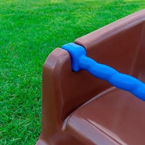 Polietileno pigmentado (colorido), com aditivo UV que garante a coloração original mesmo que exposto ao tempo.