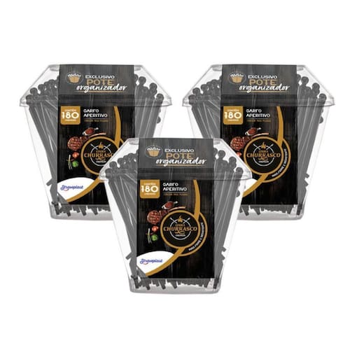 Garfo Aperitivo Premium Preto 540 Unidades - 3 Potes com 180 Unidades.