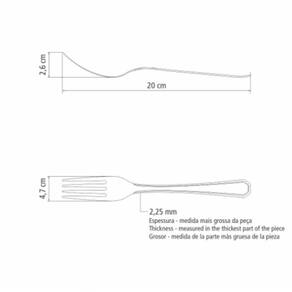 Garfo com dentes polidos na parte interna, para proporcionar maior conforto no uso, com formato apropriado para a boca e bordas arredondadas. Totalmente feito de aço inox, altamente durável, mantém suas características , preservando a beleza, a higiene e a durabilidade do material. Acabamento em alto brilho. Pode ser lavado diariamente na máquina de lavar louças.