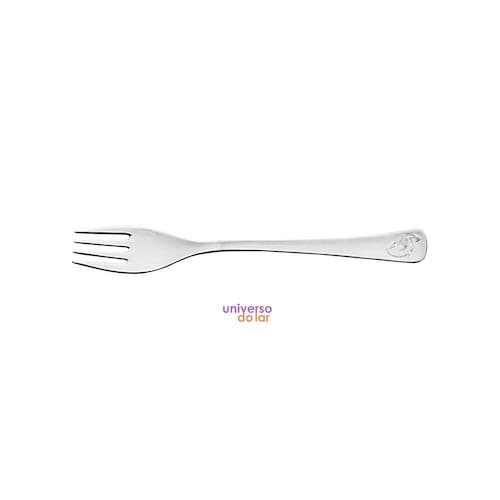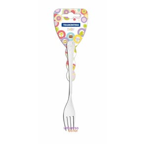 Garfo Infantil - A linha infantil Baby é a mais tradicional da Tramontina para papais e mamães que buscam produtos com a higiene do aço inox.- Totalmente feito de aço inox, por isso não solta nenhum resíduo nos alimentos, mantendo-os saudáveis. - Altamente durável mantém suas características originais, preservando a beleza, a higiene e a durabilidade do material. - Garfo com formato ergonômico, especialmente criado para incentivar e auxiliar no desenvolvimento das crianças. - Acabamento em brilho, com desenho estampado em alto-relevo. - Pode ser lavado diariamente na máquina de lavar louças.. Recomendações Durante a lavagem, use apenas sabão ou detergente e uma esponja macia. Outros tipos de produtos, como palha de aço, poderão riscar ou prejudicar o brilho dos talheres. Enxágue bem cada peça a fim de remover totalmente os resíduos dos produtos de limpeza, pois, por serem abrasivos, podem prejudicar o inox. Sempre que possível, use água quente, pois renova o brilho do talher. Após a lavagem, enxugue imediatamente os talheres, caso contrário, as substâncias químicas da água (cloro) poderão causar manchas. Evite atrito entre os talheres durante o processo de lavagem e no armazenamento, para mantê-los sem riscos. Evite o contato das peças com superfícies quentes. Elas provocam a descoloração do produto. Não guarde os talheres em locais úmidos. A umidade também provoca manchas. Ao usar a lava-louça, recomendamos retirar os talheres logo que tenha terminado o ciclo ''enxaguar'', a fim de que sejam secados manualmente.