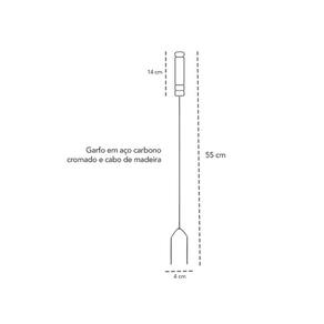 Garfo para churrasco. Os espetos e garfos são fabricados em aço carbono cromado com cabo de madeira. Produto de alta durabilidade e resistência que combina com ambientes rústicos e modernos. O garfo para churrasco auxilia ao manusear a carne durante o processo de assar.