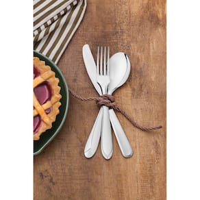 Para se deliciar com pizzas da melhor maneira, é necessário estar utilizando itens indicados, assim a experiência gastronômica se torna ainda mais incrível. E o Garfo para Pizza Tramontina Laguna em Aço Inox cumpre a missão de tornar estes momentos mais incríveis. A peça é ideal para ser utilizada em pizzarias e restaurantes, e por possuir acabamento em brilho e ser totalmente feito em aço inox, apresenta alta resistência e durabilidade, podendo inclusive ser levado ao lava-louças diariamente. Orientações Totalmente feitos de aço inox, por isso não solta nenhum resíduo nos alimentos, mantendo-os saudáveis. Altamente duráveis, mantêm suas características originais, preservando a beleza, a higiene e a durabilidade do material. Próprios para o uso em pizzarias e restaurantes. Acabamento brilho. Podem ser lavados diariamente na máquina de lavar louças. Observações Durante a lavagem, use apenas sabão ou detergente e uma esponja macia. Outros tipos de produtos, como palha de aço, poderão riscar ou prejudicar o brilho dos talheres. Enxágue bem cada peça a fim de remover totalmente os resíduos dos produtos de limpeza, pois, por serem abrasivos, podem prejudicar o inox. Sempre que possível, use água quente, pois renova o brilho do talher. Após a lavagem, enxugue imediatamente os talheres, caso contrário, as substâncias químicas da água (cloro) poderão causar manchas. Evite atrito entre talheres durante o processo de lavagem e no armazenamento, para mantê-los sem riscos. Evite o contato das peças com superfícies quentes. Elas provocam a descoloração do produto. Não guarde os talheres em locais úmidos. A umidade também provoca manchas. Ao usar a lava-louça, recomendamos retirar os talheres logo que tenha terminado o ciclo ''enxaguar'', a fim de que sejam secados manualmente. Características Gerais EAN13 7891116081716 DUN14 17891116081713 NCM 8215.99.10 Peso Líquido 0,0300 kg. Peso Bruto 0,0300 kg. Metragem 0,000084 m³. Dimensões Embalagem (Compr. X Larg. X Alt.) 193x 23x 19 mm. Dimensões Produto (Compr. X Larg. X Alt.) 193x 23x 19 mm. Espessura 1,6 mm.