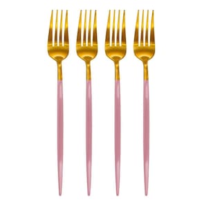 Perfeitos para ocasiões que pedem charme e sofisticação, as peças são produzidas em aço inoxidável espesso na cor dourada e os cabos na cor rosa com acabamento impecável!