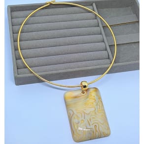 Colar aro dourado com detalhe pedra retangular grande pingente madripérola