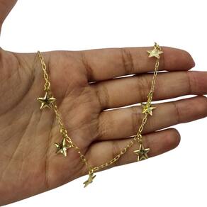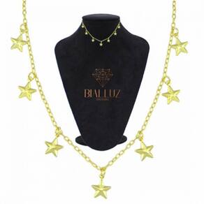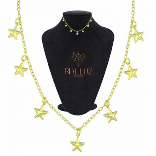 Gargantilha Choker Folheada a Ouro Pingentes de Estrelas A Gargantilha Choker folheada a Ouro Pingentes de Estrelas da Bialluz é banhado a ouro garantindo alta resistência e durabilidade. A corrente possui 43,3 cm de comprimento, mas é totalmente regulável podendo ser usada por qualquer pessoa, além de contar com um pingente maravilhoso que emanará ótimas energias em sua vida. É uma maravilhosa opção de presente, com certeza a pessoa que receberá sentirá muita gratidão por ter uma peça tão bela.