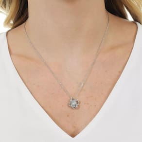 A principal característica desse colar é o pingente em formato de flor estilizada, com pétalas entrelaçadas e uma zircônia no centro. Esse detalhe dá um toque de brilho e sofisticação à peça, tornando-a perfeita para qualquer ocasião.