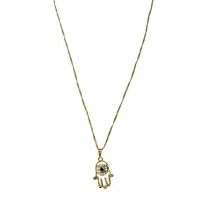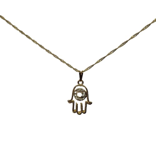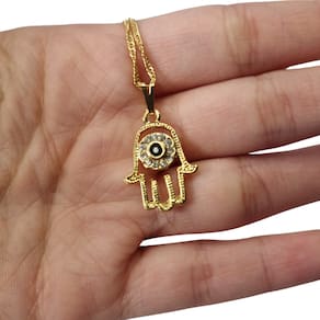Gargantilha Folheada Amuleto da Sorte - Cor: Hamsá Strass Dourado