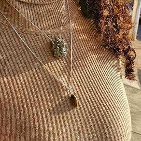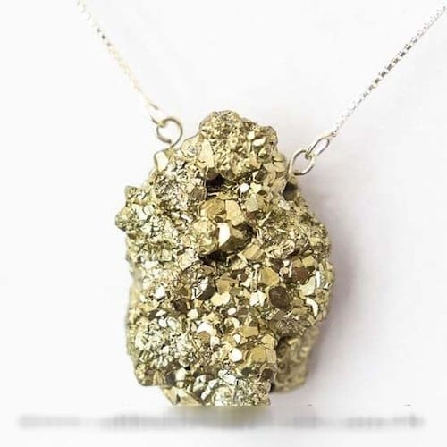 Gargantilha Pirita Peruana Pedra Natural Cordão Veneziana 45cm Prata Pedra Natural com Furo vazado montado acabamento interno mais corrente veneziana com 45cm em Prata 925