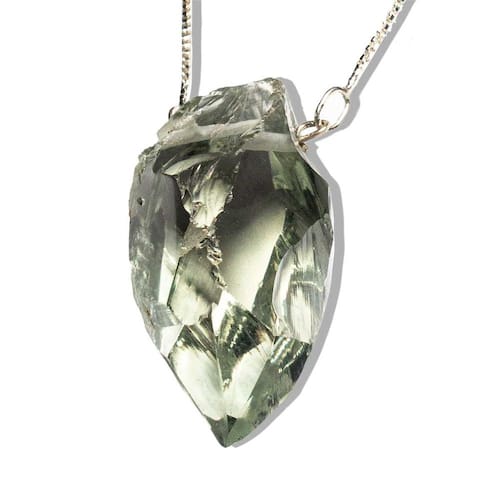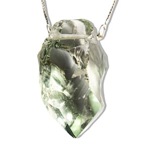 Descubra a Gargantilha Prasiolita Pontinha Bruto Natural em Prata 950, uma peça única e sofisticada. Com design exclusivo e pedra natural prasiolita, ideal para quem aprecia joias autênticas e de alta qualidade. O que irá receber: 1- Colar com pedra Natural pronto para uso Detalhes do Cordão ou Colar: Cordão ou Colar, feito de Prata 925 Fecho Lagosta Dimensões: 40 cm comprimento x 2 mm largura Peso aproximado: 2 gramas (Leve) Detalhes da Pedra:\nPedra: Prasiolita Cor da Pedra: Verde vibrante (foto ilustrativa) Corte: Bruto com Pontinha Natural Claridade: Brilhosa com Transparência Medida da Pedra: 30 x 26mm (variação conforme estoque) Peso Total da Peça: 44,5ct\nImportante:\nAs pedras naturais podem apresentar variações nas tonalidades e grafismos, o que torna cada peça única. Pequenas inclusões ou fissuras são normais devido à formação natural da pedra. A foto é ilustrativa e pode haver pequenas variações na aparência devido à luz do estúdio.\nPor que comprar na Distribuidora Cristais de Curvelo? Compromisso com o Meio AmbientePriorizamos a sustentabilidade, utilizando 90% de embalagem reciclável e grande parte biodegradável. Nossos garimpos seguem rigorosamente as normas ambientais estabelecidas pelas leis vigentes, assim como nossas lapidações. Além disso, adotamos práticas de reciclagem de água, aproveitamento de retalhos de pedras e uso de discos diamantados, com a meta de atingir 100% de reciclagem em nossos processos. Marca: CristaisdeCurvelo