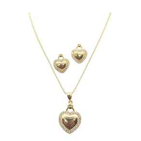 descrição do produto conjunto colar + brinco folheado a ouro 18k coração com lateral cravejada de zircônias