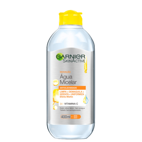 Água micelar para pele oleosa. Garnier SkinActive Antioleosidade Vitaminca C combina tecnologia micelar em uma loção de limpeza antioleosidade para peles normais a oleosas. Sua fórmula adstringente ajuda a remover impurezas e maquiagem do rosto, com ação hidratante, tonificante e toque oil free. O produto também conta com ação anti-manchas e anti-marcas, para que a pele fique, ao mesmo tempo, uniforme e matte!