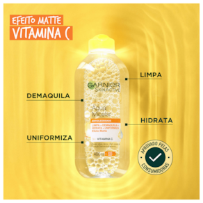 Água micelar para pele oleosa. Garnier SkinActive Antioleosidade Vitaminca C remove maquiagem, enquanto oferece tratamento antioxidante com Vitamina C.