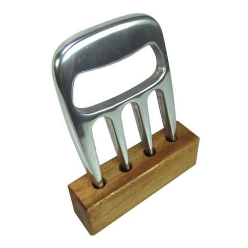 Garra para Churrasco 4 Pontas com suporte de madeira A garra serve para dar suporte ao cortar sua carne durante o churrasco, trata-se de uma ferramenta indispensável para todo bom churrasqueiro. Transmitindo segurança na hora do corte e proporcionando maior na carne consequentemente, maior firmeza para o corte de peças maiores. Comprimento Total: 15 cm Largura: 10,5 cm Material: Alumínio Polido Marca: Não Informado