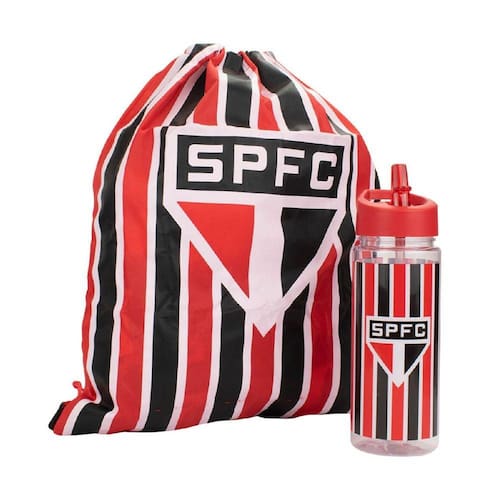 PRODUTO: Garrafa 450ml Plástica com Mochila Tipo Saco -São Paulo EAS026Marca: MilenoModelo: TorcedorCategoria: Apaixonados por futebolLicenciado: Sociedade Esportiva São PauloReferência: EAS026-2Código de barras: 4894290280916Descrição: Garrafa de plástico com canudo e capacidade para 450 ml gravada no escudo do São Paulo FC e cores do time. Dentro da garrafa, segue uma mochila tipo saco com 41 x 31 cm de dimensão na mesma característica.Características: Dois produtos pelo preço de um, além de utilizar a garrafa, você terá uma linda mochila, com ela você transporta o que quiser para a prática de esportes, passeios ou o que você imaginar.Medida da garrafa: 19 cm de altura x 7 cm de diâmetroCapacidade da garrafa: 450 mlMaterial: Garrafa de plástico; Mochila de poliéster.Motivação: Uma linda opção de presente aos amantes do futebol e torcedores do São Paulo.Conteúdo da embalagem: 1 garrafa e 1 mochila tipo saco.Dimensões aproximadas da embalagem (A x L x P): 21 cm x 10 cm x 10 cmPeso aproximado da embalagem: 0,250.