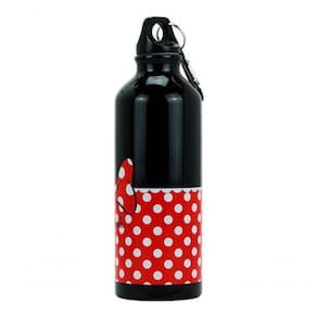 Garrafa de alumínio capacidade para 500 ml estampada com as cores da Minnie. Vem com prendedor para mochila. Material: alumínio