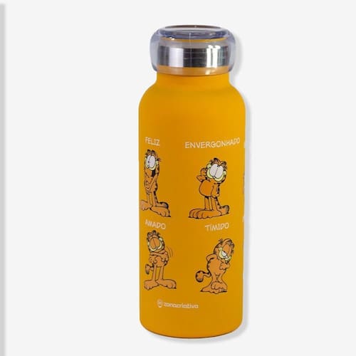 Garrafa Bubble Garfield Expressões Depois de passar o dia todo descobrindo novas brincadeiras para derrotar o tédio, você não consegue derrotar a sede? A gente te ajuda! Com 500ml de capacidade e feita em aço inoxidável, essa garrafa ajuda a manter a temperatura da sua bebida até nos dias mais quentes! Não importa qual é a aventura, essa garrafa te acompanha em todos os momentos! O produto é importado, feito em aço inoxidável e plástico, possui detalhes incríveis que vão fazer você se apaixonar! Com 500ml de capacidade, tampa rosqueável e com vedação em silicone, é a companhia perfeita para as suas aventuras diárias! Com o corpo em aço inoxidável ajuda a manter a temperatura da sua bebida por até 6h! Além de possuir uma embalagem perfeita para presentear! Não importa o tamanho da sua sede, essa garrafa está sempre pronta para te hidratar!