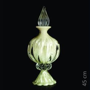 Garrafa Com Base Em Cristal Pérola - São Marcos 45cm Garrafa Com Base Em Cristal Pérola - São Marcos é uma peça decorativa produzida 100% artesanalmente com a técnica secular e originária da Itália, a qual com muita maestria e criatividade são desenvolvidas e preservadas no brasil pela Cristais São Marcos desde 1962.