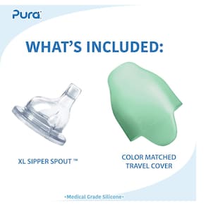 - Sistema de alimentação e hidratação livre de toxinas: isolado com uma vedação certificada sem grafite. Bico de fluxo rápido XL macio para dentes e gengivas saudáveis. Inclui uma capa de viagem de silicone macio que permanecerá mesmo quando empurrada em sua bolsa e uma capa de silicone colorida brilhante