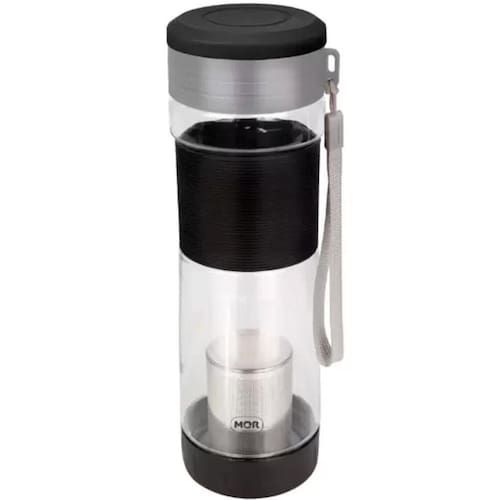 A Garrafa com Infusor está disponível nas cores Bege e Preta. Possui capacidade para encher até 550ml de água. Conta com um compartimento na tampa para separar o seu chá. Protetor de silicone para segurar com mais comodidade, sem queimar as mãos. Infusor na base para manter a infusão até o final. Alça super discreta para poder carregar no pulso. A bebida quente fica conservada por 30 minutos sem a tampa e 45 minutos se estiver com a tampa fechada; e a bebida com gelo permanece intacta em até 45 minutos sem a tampa e 1 hora com a tampa fechada