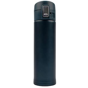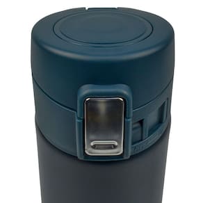 A tampa plástica fosca com botão de abertura fast click e borracha interna para vedação evitando o vazamento de líquido e conservando sua temperatura