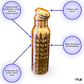 Para obter melhores resultados, encha a garrafa com água potável e deixe-a armazenada por 4 a 8 horas (ou durante a noite). Isso permite que o cobre libere seus benefícios naturais na água.