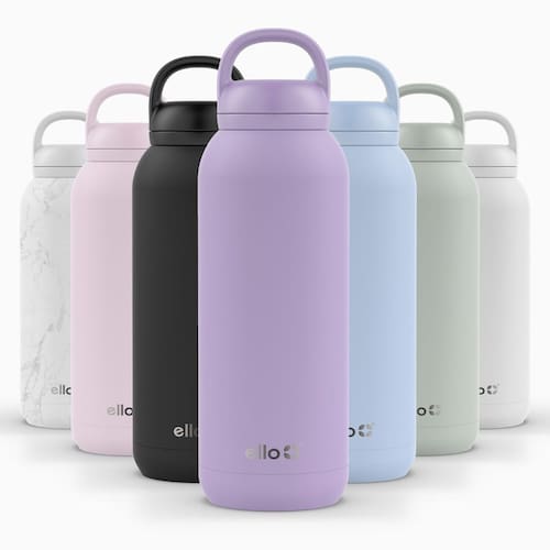 Ello Garrafa de água Cooper Twist de aço inoxidável de 1,134 g com tampa Chug | À prova de vazamento | Parede dupla e isolada a vácuo | Alça de transporte embutida | Pode ser lavada na lava-louças | - Bico de mandril: o bico estilo chug fácil de usar proporciona um fluxo suave e contínuo de hidratação, enquanto a alça incorpora uma alça de transporte fácil de usar - Mantém frio o dia todo: parede dupla e isolamento a vácuo para manter as bebidas frias por até 24 horas. Mantenha-se hidratado não importa onde a vida o leve com nossa garrafa de água confiável. - 100% à prova de vazamento: nossa garrafa possui uma vedação de parafuso segura e à prova de vazamentos, permitindo que você a jogue em sua bolsa sem preocupações. - Fácil de viajar: leve sua garrafa de água onde a vida levar você, graças à alça de transporte embutida. Prenda-o à sua mochila, bolsa de ginástica ou carregue-o à mão. - Fácil de limpar: a tampa pode ser lavada na prateleira superior da lava-louças, o que facilita a limpeza. Recomendamos lavar o corpo à mão para maior longevidade, sinta-se à vontade para jogá-lo na máquina de lavar louça, se preferir. Todas as peças são livres de BPA.