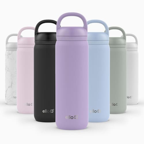 Ello Garrafa de água Cooper Twist de aço inoxidável de 623 g com tampa de chug | Parede dupla à prova de vazamento e isolada a vácuo | Serve para porta-copos de carro | Alça de transporte embutida | - Bico de mandril: o bico estilo chug fácil de usar proporciona um fluxo suave e contínuo de hidratação, enquanto a alça incorpora uma alça de transporte fácil de usar - Mantém frio o dia todo: parede dupla e isolamento a vácuo para manter as bebidas frias por até 24 horas. Mantenha-se hidratado não importa onde a vida o leve com nossa garrafa de água confiável. - 100% à prova de vazamento: nossa garrafa possui uma vedação de parafuso segura e à prova de vazamentos, permitindo que você a jogue em sua bolsa sem preocupações. - Fácil de viajar: leve sua garrafa de água onde a vida levar você, graças à alça de transporte embutida. Prenda-o à sua mochila, bolsa de ginástica ou carregue-o à mão. - Fácil de limpar: a tampa pode ser lavada na prateleira superior da lava-louças, o que facilita a limpeza. Recomendamos lavar o corpo à mão para maior longevidade, sinta-se à vontade para jogá-lo na máquina de lavar louça, se preferir. Todas as peças são livres de BPA.