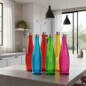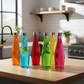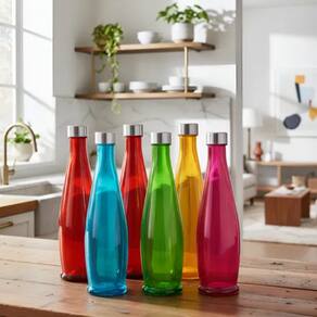 Corpo de vidro colorido e tampa de inox, que oferece durabilidade, evita oxidação e ainda acrescenta requinte visual.