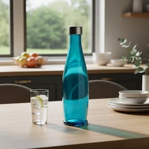 Corpo de vidro colorido e tampa de inox, que oferece durabilidade, evita oxidação e ainda acrescenta requinte visual.