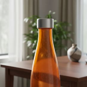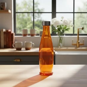 Corpo de vidro colorido e tampa de inox, que oferece durabilidade, evita oxidação e ainda acrescenta requinte visual.