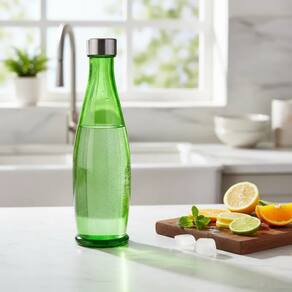 Corpo de vidro colorido e tampa de inox, que oferece durabilidade, evita oxidação e ainda acrescenta requinte visual.
