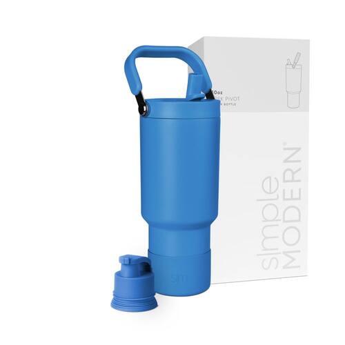 Simple Modern Trek Pivot | Copo de canudo flip de 850 g com alça | Garrafa de água e bota | Canudo intercambiável e tampas | Jarro de aço inoxidável isolado | academia esportes ao ar livre | Azul - Tampa multiuso: com duas peças de tampa intercambiáveis, você pode escolher o seu método de gole preferido - canudo ou chug - e trocar facilmente o componente de beber dentro da tampa a qualquer momento. - Funcional: porta-copos amigável com um design de alça ergonômica, permitindo uma aderência confortável e facilidade de transporte ao girar de uma atividade diária para outra. - Isolamento de parede dupla: mantém as bebidas frias ou quentes por horas. - Durável: Feito de aço inoxidável 18/8 premium e vem com uma bota de silicone para suavizar aterrissagens e melhorar a estabilidade. - Garantia vitalícia limitada e patente pendente