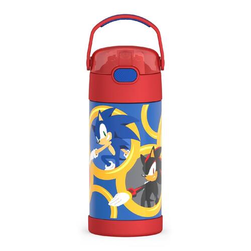 Garrafa de água THERMOS FUNTAINER com canudo - 12 onças, Sonic the Hedgehog - Garrafa de água isolada a vácuo de aço inoxidável para crianças com tampa - PERMANECE FRIA: a tecnologia de isolamento a vácuo THERMOS mantém as bebidas geladas por até 12 horas. Nossas garrafas de água para crianças são construídas de forma que suas bebidas sejam tão frescas por dentro quanto por fora. Não é adequado para líquidos quentes — DURÁVEL PARA USO DIÁRIO: A construção em aço inoxidável 18/8 de alta qualidade é construída para lidar com quedas, amassados e diversos compartimentos de desbaste. Você pode colocar sua garrafa de água FUNTAINER na lava-louças, embora seja recomendável lavá-la à mão. Design adequado para crianças: escolha entre uma variedade de cores e padrões divertidos! Esta garrafa de água é leve e compacta com uma tampa de botão, por isso é fácil de transportar e abrir. A alça de transporte integrada possui uma alça de toque suave - CANUDO HIGIÊNICO COBERTO: ajude a manter os germes afastados com um canudo dobrável higienicamente coberto que também é removível para facilitar a limpeza - PROTEJA O QUE VOCÊ ADORA: este equipamento THERMOS KIDS é feito com materiais duráveis que podem ser lavados na máquina de lavar louça, destinados a manter o almoço e as bebidas como eles gostam. O quebra-cabeça da hora do almoço está oficialmente resolvido