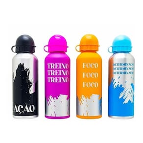Você já pensou em conservar o meio ambiente, ter estilo e se manter hidratado o dia inteiro Tudo isso pode ser feita com nossa garrafa de aço inox tem um design bem bonito, que vai impressionar você. Além de ser ecologicamente correta, pois, você deixa de usar itens de plástico descartáveis. GARRAFA ALUMINIO 500ML Informações do Produto Composição: Alumínio. Contém: 01 Unidade dentre os modelos da imagem. Cores: . Peso: 0,080 g Dimensões da embalagem A-L-C : 21 x 6,5 x 6,5 cm Código Fabricante: 161215