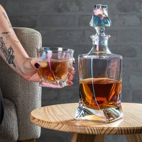 Esta garrafa é fabricada em cristal de alta qualidade, conhecido por sua clareza excepcional e brilho luminoso. O modelo pertence à linha Tortile, que apresenta um design meticulosamente trabalhado para proporcionar um toque de luxo a bares residenciais e coleções de bebidas.