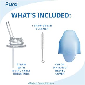 - Copo de canudo infantil multiuso e garrafa de água infantil: esta garrafa de copo com canudinho de aço inoxidável se transforma facilmente em uma garrafa infantil, copo com canudinho, garrafa esportiva/de água ou um recipiente de lanche simplesmente trocando o canudo por outra tampa de silicone Pura Baby Grows...Bottle Evolves