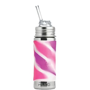 O copo de palha Pura possui uma garrafa de aço inoxidável de grau alimentício (18/8), canudo de silicone de grau médico, capa de viagem, manga e zero peças de plástico! O canudo de silicone incluído possui um design de duas peças com um canudo de silicone interno que pode ser separado da boca para facilitar a limpeza. O pedaço de silicone do canudo pode ser utilizado com o nosso canudo de silicone interno incluído. O canudo oferece um fluxo muito rápido. Ideal para crianças de 6 meses a 4 anos, este copo de canudo é compatível com todos os componentes de silicone da Pura incluindo nossos bicos de ventilação natural em várias taxas de fluxo, bico de silicone XL, discos de vedação e parte superior esportiva. Cada copo tem marcas de volume internas pressionadas que podem ser claramente vistas no interior da garrafa para facilitar a medição. A garrafa também é compatível com bicos e bicos de outras marcas. Com a Pura você pode ter certeza de que está sempre usando a garrafa mais segura e eco-progressiva do mercado. One Life... One Bottle