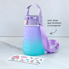 Esta garrafa possuir anel de silicone e tampa flip que evita vazamento de água. Acompanha adesivo e a alça possui apoio para celular. Adequado para casa, escola, camping.