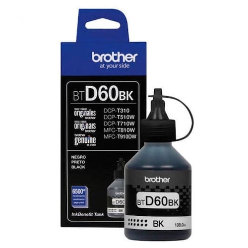Garrafa de tinta autêntico Brother para InkTank BTD60BK Preto 108ml Rendimento aproximadamente 6.500 páginas