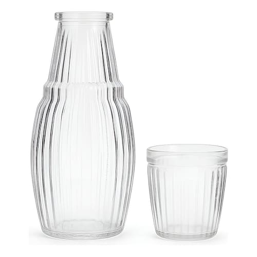 A união perfeita de utilidade e sofisticação para sua água e sucos! Um item indispensável que adiciona um toque de charme e funcionalidade à sua mesa de cabeceira, escritório ou mesa de jantar. - Perfeita para manter sua hidratação em dia ou servir sucos e águas aromatizadas com elegância. -O copo de vidro se encaixa perfeitamente como uma tampa, protegendo o líquido de poeira e impurezas e economizando espaço. -O vidro não retém odores, cores ou sabores, garantindo que sua água ou suco permaneça puro. Especificações Técnicas: - Material: Vidro - Dimensões Aprox.: 25cm (ALTURA) x 6cm (LARGURA) - Jarra - Dimensões Aprox.: 9cm (ALTURA) x 4cm (LARGURA) - Copo - Capacidade da jarra: 1L - Capacidade do copo: 200ml Itens Inclusos: - 01x Jarra - 01x Copo