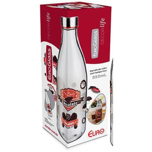 Garrafa de Vidro Decorada Para Leite 950 ml achocolatado A Garrafa para Leite da Euro é produzida em vidro e é perfeita para armazenar leite, sucos, achocolatados e outras bebidas. Seu design é moderno e descontraído, ideal para qualquer ocasião, além de dar um toque especial a sua decoração. A tampa da garrafa é rosqueável e protege sua bebida. Conteúdo: 1 Garrafa 950 mL com tampa Informações: 90 dias contra defeitos de fabricação Limpeza: Para a limpeza dos produtos, não use lã de aço ou outros abrasivos. Após a lavagem, passe um pano com água quente e seque imediatamente, para manter o brilho . Capacidades individuais: 950 ml Pesos Individuais: 600 g Medidas Individuais: 8,5 x 8,5 x 27 Composição: Vidro / Aço inox / PP / Silicone