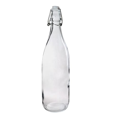 GARRAFA DE VIDRO TRANSPARENTE COM TAMPA HERMÉTICA 1000ML - GA10016